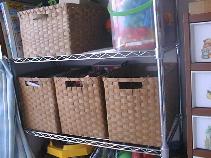 | 奥行きが浅い棚にもクラフトのバスケッ トなら、こうやって置けちゃうのです。 |