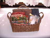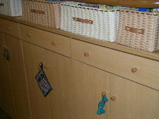パッチワークなどの布を入れていま す。いつもこうして置いておけば、 すぐに製作出来ますね。 |