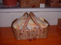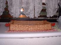| 記念すべき布のフタ付きバスケット の1作目。みんな真似して作りまし た。中身は女の子の宝物?! |
