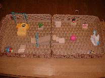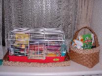 ハムスターグッズもこうやって整理 整頓。ゲージの下にも浅いバスケット をひいています。 |