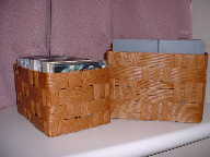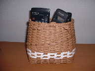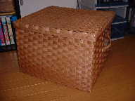 50号(2004.1.9発行) 画像クリックしてね。 カントリー雑貨のバスケットを 真似て作ったバスケットです。 |